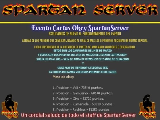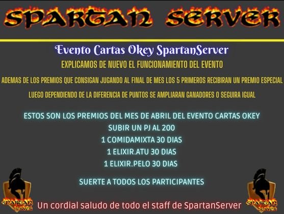 ESTOS SERAN LOS PREMIOS PARA EL EVENTO DE LAS CARTAS OKEY DE ABRIL SPARTANSERVER